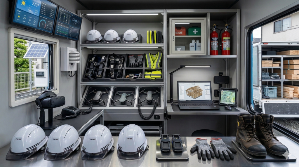 ドローンによる空撮は、屋根上や橋梁などの高所点検において、作業員が危険を冒す必要をなくしました。また、**BIM(ビルディング・インフォメーション・モデリング)**を活用すれば、施工前に3Dモデル上で動線をシミュレーションし、潜在的な事故リスクを事前につぶすことが可能です。